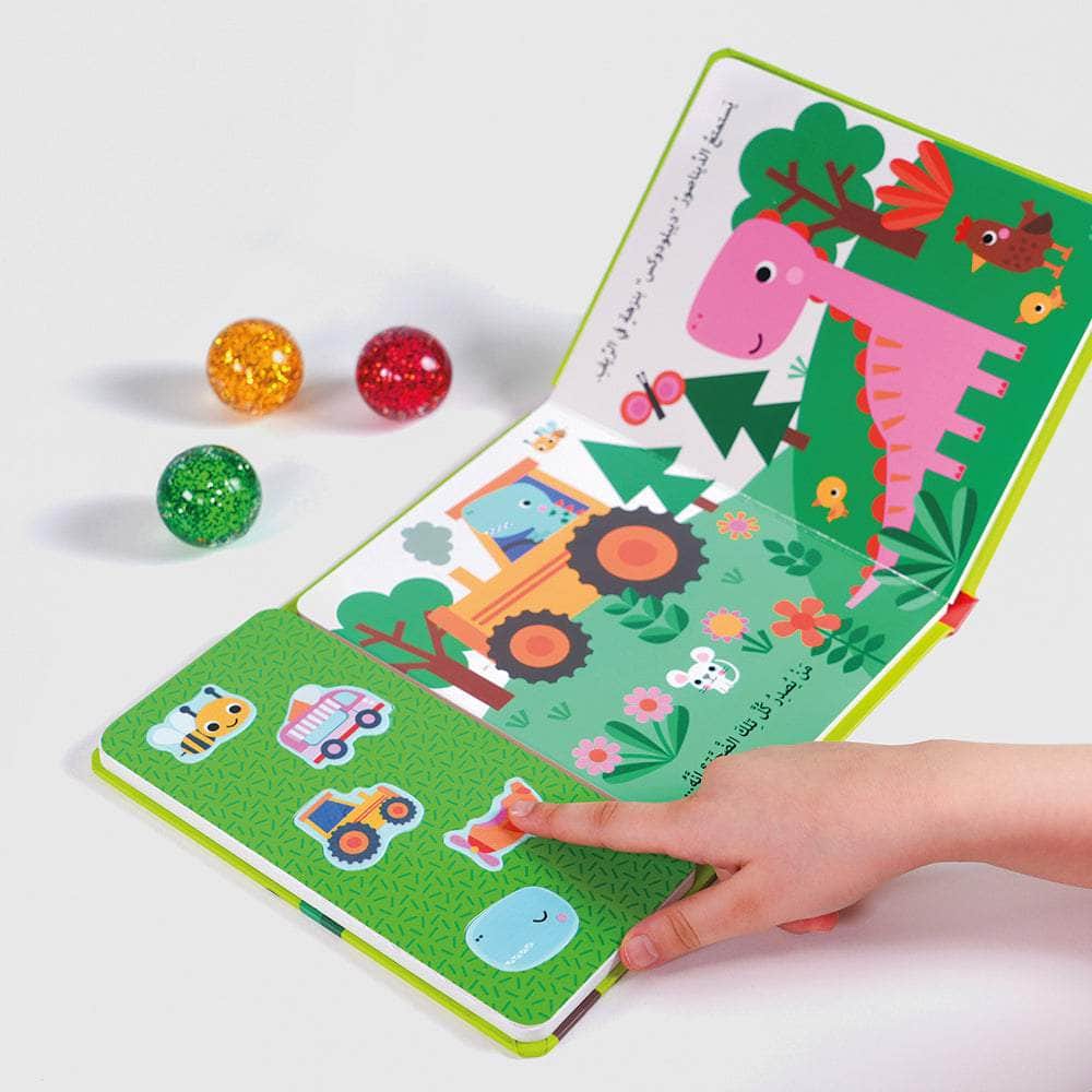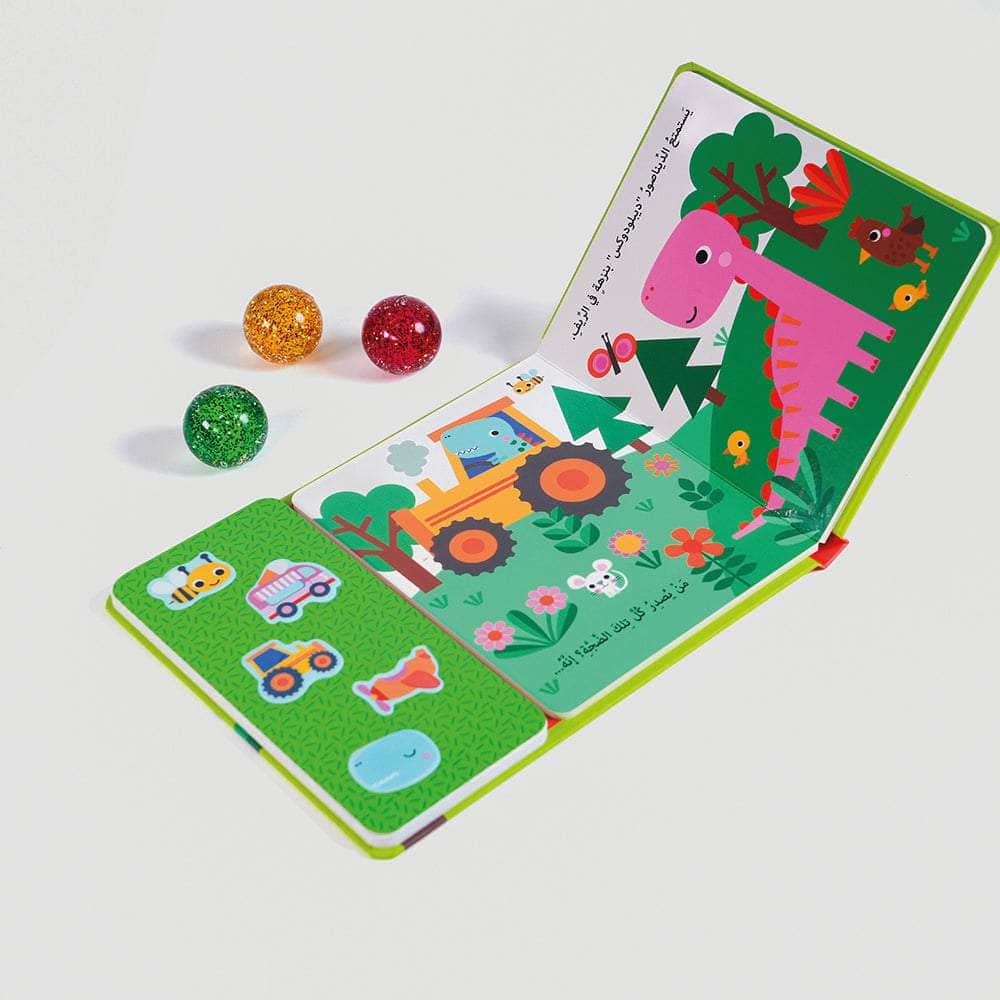 استمتعوا برحلةٍ ممتعةٍ مع هذا الكتاب الصّوتيّ السّاحر، حيث يمكن للأطفال استكشاف 5 أزرارٍ تصدر أصواتاً شيّقةً ستضفي الحياة على الكتاب المليء بالرّسومات الأخّاذة.