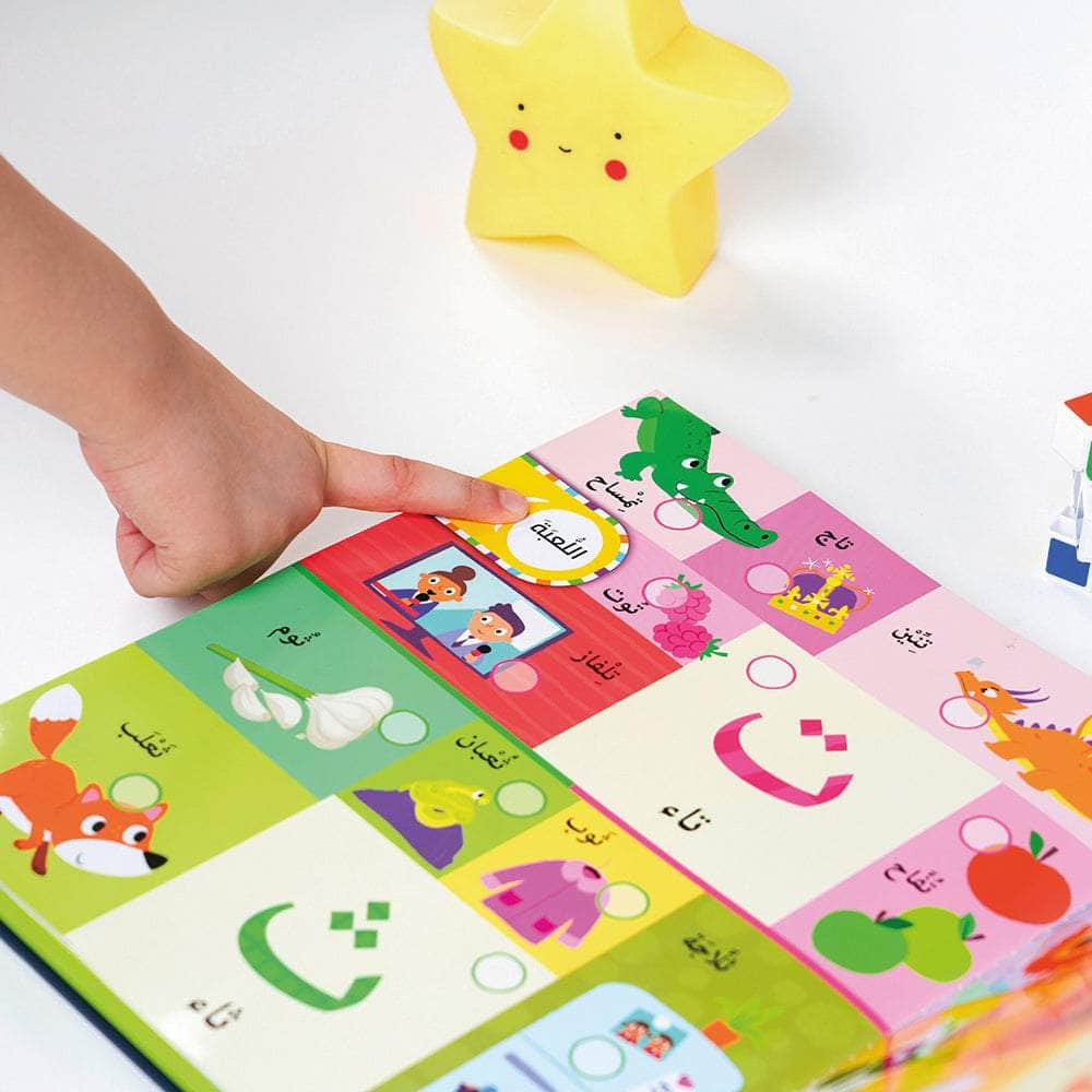 إنَّ هذا الكِتابَ التَّفاعليَّ يضمنُ تَجربةَ تعلُّمٍ سهلةٍ ومُمتعةٍ للأطفالِ! فهوَ يُقدِّمُ معلوماتٍ شاملةً عنِ الحروفِ والكلماتِ الَّتي تبدأُ بِها. سيَستمتعُ الصِّغارُ بتعلُّمِ الأبجديَّةِ، وبتعزيزِ مُفرداتِهم، وباختبارِ معرفتِهِم.